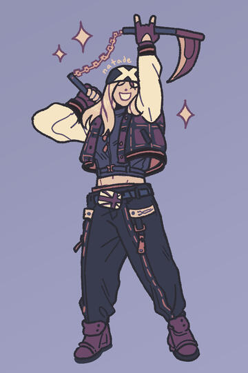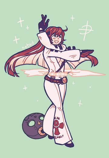 A drawing of a Guilty Gear character (XX/XRD/Str) in any of their taunt or round victory poses.